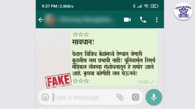 सध्या देशात कोरोना महामारीचा प्रादुर्भाव असल्याने पोलिसांनी अफवा न पसरविणाऱ्या बातम्या किंवा मेसेजेस शेअर न करण्याचे बजावले आहे.