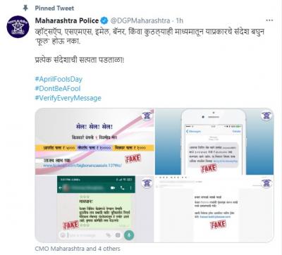 सध्या देशात कोरोना महामारीचा प्रादुर्भाव असल्याने एप्रिल फूलचा आधार घेऊन पोलिसांनी अफवा न पसरविणाऱ्या बातम्या किंवा मेसेजेस शेअर न करण्याचे बजावले आहे.
