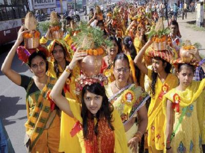 भोपाळ येथील महिला पारंपारिक पद्धतीने शिवदर्शनाला जाताना