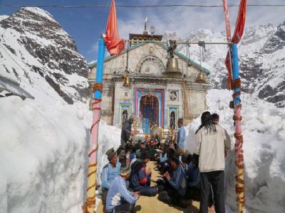 महाशिवरात्री निमित्त केदारनाथ येथे पूजे करता जमलेले भाविक