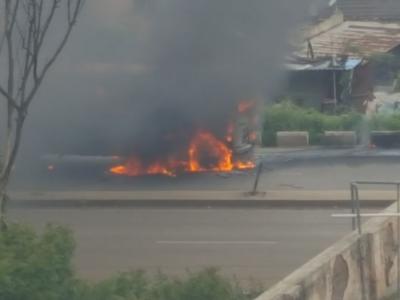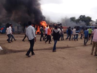 चाकणमध्ये मराठा आंदोलन चिघळले, अग्निशामक दल, एसटी बस व पोलिसांच्या गाड्या पेटवल्या.