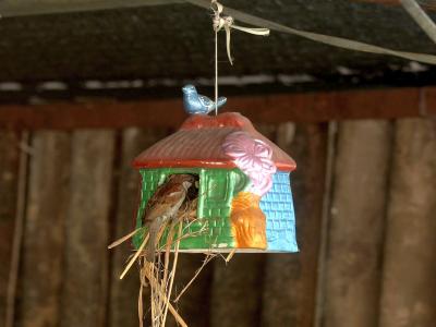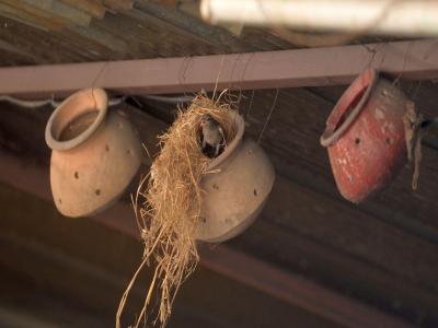मातीच्या सुमारे चाळीस घरट्यांपैकी वीस घरट्यांमध्ये चिऊताईने सुखाचा संसार थाटलेला आहे