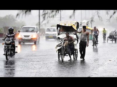 भर मुसळधार पावसात आपलं काम करणारे मजूर