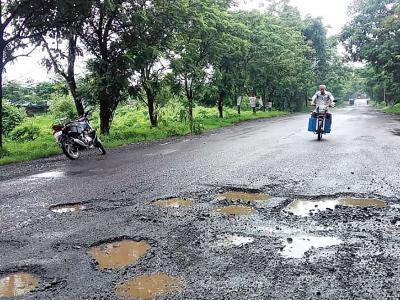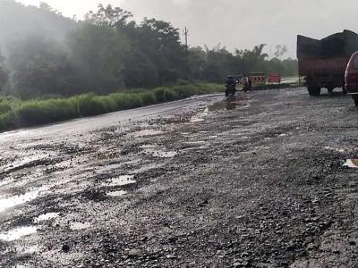 महामार्गावर मोठमोठे खड्डे पडले असून वाहनचालकांना मोठी कसरत करावी लागत आहे. खड्ड्यांमुळे अनेक अपघाताच्या घटना घडत असून स्थानिकांकडून संताप व्यक्त करण्यात येत आहे.