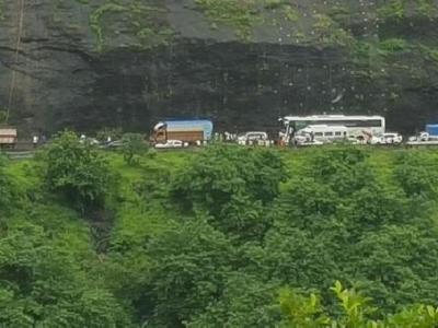 मुंबई - पुणे एक्सप्रेस वेवर रविवारी सकाळी आडोशी बोगद्याजवळ दरड कोसळल्याने एक्सप्रेस वेवरील वाहतूक विस्कळीत झाली आहे.
