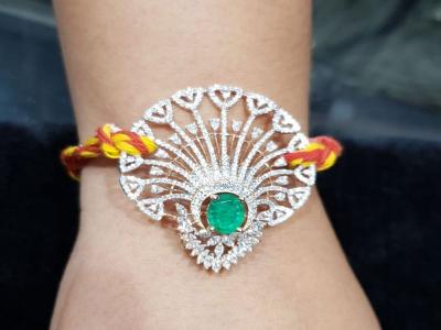 राखीच्या मध्यभागी वापण्यात आलेला डायमंड युनिक कलरचा आहे. या राखीची किंमत जवळपास 2.5 लाख इतकी आहे.