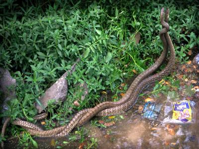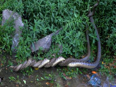 नाशिकमधील हनुमानवाडी भागात अशाच प्रकारे थक्क करणारी धामण प्रजातीच्या सर्पांची झुंज बघण्यासाठी नागरिकांनी गर्दी केली होती. (सर्व छायाचित्रे : प्रशांत खरोटे)