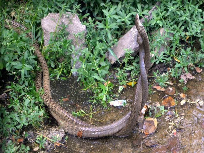 1 / 5मादीची जागा मिळविण्यासाठी प्रणयपुर्व झुंज2 / 5दोन नरांमध्ये सुरू असलेली विजय-पराजयाची झुंज नागरिकांनासर्पांचे मीलन वाटते3 / 5नर जातीचा सर्प आकर्षित होऊन मादिचा शोध घेतो. यावेळी त्या भागात एकापेक्षा अधिक नर जातीचे सर्प असल्यास त्यांच्यात मादीची जागा मिळविण्यासाठी प्रणयपुर्व झुंज पहावयास मिळते. 4 / 5नर जातीचा सर्प आकर्षित होऊन मादिचा शोध घेतो. यावेळी त्या भागात एकापेक्षा अधिक नर जातीचे सर्प असल्यास त्यांच्यात मादीची जागा मिळविण्यासाठी प्रणयपुर्व झुंज पहावयास मिळते. 5 / 5नाशिकमधील हनुमानवाडी भागात अशाच प्रकारे थक्क करणारी धामण प्रजातीच्या सर्पांची झुंज बघण्यासाठी नागरिकांनी गर्दी केली होती. (सर्व छायाचित्रे : प्रशांत खरोटे)