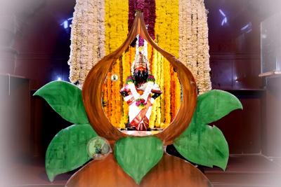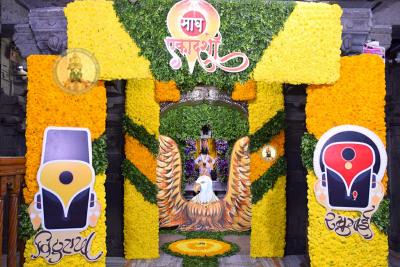 PHOTOS : माघवारीनिमित्त विठ्ठल-रुक्मिणी मंदिरातील गाभारा फुलांनी सजला