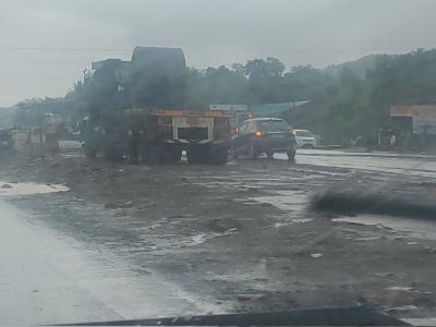 लोनेरे या एका छोट्या गावात, जिथे उड्डाणपूल बांधला जात आहे, तिथे मुसळधार पावसामुळे सर्व्हिस रोडवर मोठे खड्डे पडले आहेत. या खड्ड्यांमुळे वाहनचालकांना वाहतूक कोडींसारख्या समस्याला तोंड द्यावे लागत आहे. (Photo Credit: X/@carvesone)