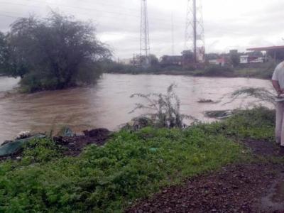 कळमनुरी तालुक्यात बुधवारी झालेल्या मुसळधार पावसामुळे दांडेगाव येथील नदीला पूर आला असून पुराच्या पाण्याखाली गावासह परिसरातील शेतशिवार गेला आहे.