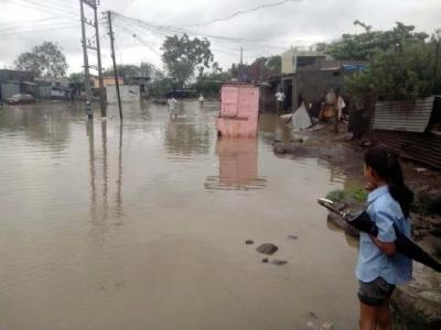 कळमनुरी तालुक्यातील आखाडा बाळापूर परिसरात बुधवारी जोरदार पाऊस झाला. त्यामुळे मागच्यावेळी पुराने फटका सोसलेला भाग पुन्हा पाण्याखाली आला आहे.