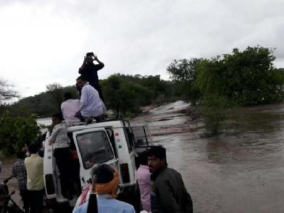 कळमनुरी तालुक्यातील पोत्रा परिसरात झालेल्या जोरदार पावसामुळे आखाडा बाळापूर-बोल्डा मार्गावरील पुलावरून पाणी वाहात होते. त्यामुळे वाहतूक ठप्प झाली.