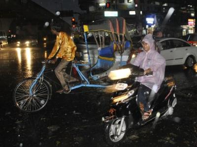 आकाशात काळ्या ढगांनी गर्दी करून जोराचे वादळ सुटले शिवाय काहीच वेळात धो धो पावसाला सुरुवात झाली.