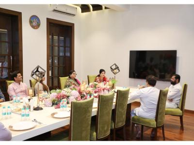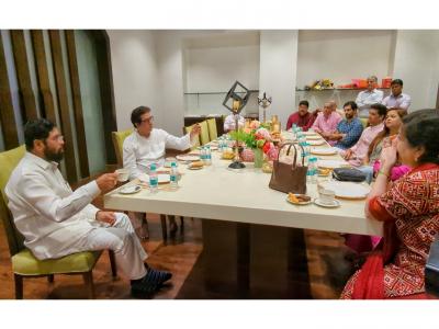 बाप्पाचे दर्शन घेऊन झाल्यानंतर ठाकरे कुटुंब, शिंदे कुटुंब आणि इतर काही पाहुण्यांचा चहा आणि गप्पांचा छान कार्यक्रम रंगला.