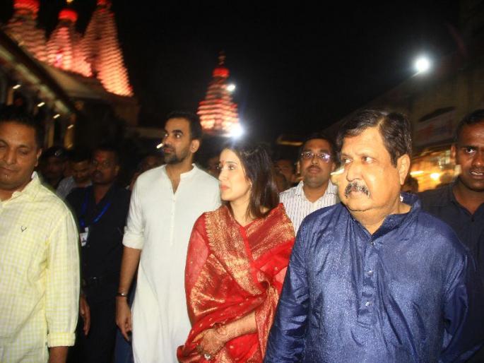 1 / 5झहीर खान व अभिनेत्री सागरिका घाटगे या नवदाम्पत्याने शुक्रवारी सायंकाळी येथील करवीरनिवासिनी अंबाबाई मंदिरात दर्शन घेतले.2 / 5 त्यांना पाहण्यासाठी नागरिकांनी मंदिरात गर्दी केली होती.3 / 5झहीर खान व सागरिका घाटगे यांचा अलीकडेच विवाह झाला होता. 4 / 5 घाटगे या मूळच्या कोल्हापूरच्या असल्याने त्यांनी परंपरेप्रमाणे पतींसह अंबाबाईचे दर्शन घेतले. 5 / 5देवस्थान समितीतर्फे अंबाबाईची प्रतिमा देऊन या नवदाम्पत्याचा सत्कार करण्यात आला. यावेळी पश्चिम महाराष्ट्र देवस्थान समितीचे अध्यक्ष महेश जाधव उपस्थित होते.