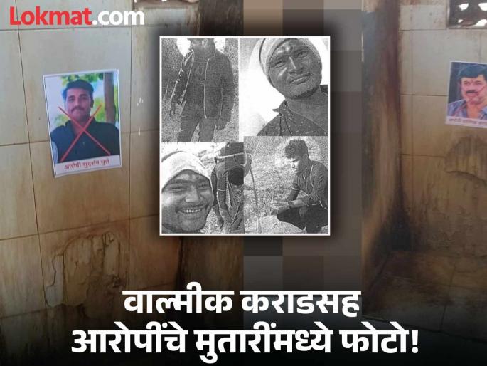 संतापाचा कडेलोट! धनंजय मुंडेसह संतोष देशमुखांच्या मारेकऱ्यांचे फोटो लागले मुताऱ्यांमध्ये