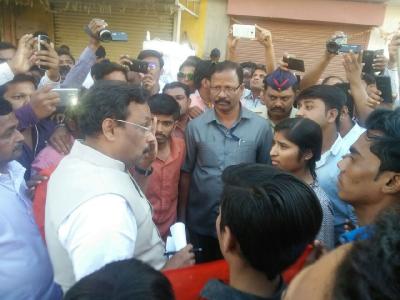 विनोद तावडे यांनी वाहनातून उतरून कार्यकर्त्यांशी चर्चा केली.