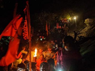 'जय भवानी, जय शिवाजी' जयघोषाने सारा आसमंत दुमदुमला. शिवरायांना मानाचा मुजरा केला जात आहे.