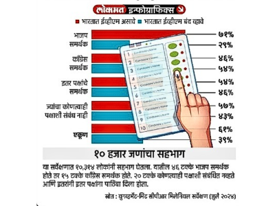 ७१ टक्के भाजप समर्थकांचं म्हणणं होतं की, ईव्हीएम असावे. तर २९ टक्के भाजप समर्थकांचं म्हणणं होतं ईव्हीएम बंद करावे.