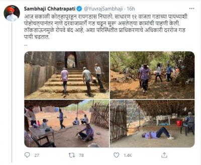 लॉकडाऊनमुळे रोपवे बंद आहे, अशा परिस्थितीत प्राधिकरणाचे अधिकारी दररोज गड पायी चढतात. रखरखत्या ऊन्हात देखील गडावरील सर्व कामे अविरतपणे सुरू आहेत. रायगड प्राधिकरणाचे अधिकारी व कर्मचारी वर्ग घेत असलेल्या मेहनतीस प्रोत्साहन देण्यासाठी मी नेहमी प्रयत्नशील असतो. वेळोवेळी रायगडास भेट देऊन सुरू असलेल्या कामांवर लक्ष देत असतो, असं संभाजीराजेंनी म्हटलं आहे.