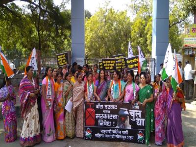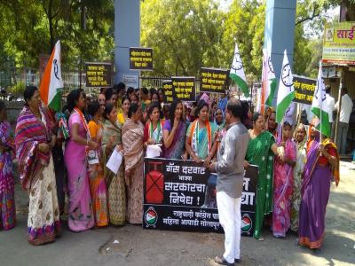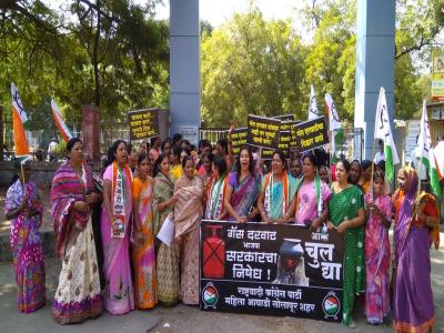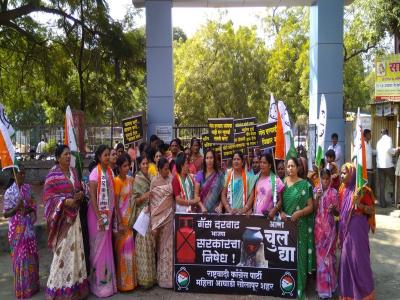 या गॅस दरवाढीच्या निषेधार्थ सोलापूर शहर राष्ट्रवादी महिला आघाडीच्यावतीने नगरसेविका सुनीता रोटे यांच्या नेतृत्वाखाली शुक्रवारी जिल्हाधिकारी कार्यालयासमोर भाजप सरकारच्या विरोधात निदर्शने करण्यात आली .
