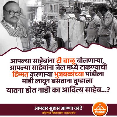 साहेबांना जेलमध्ये टाकण्याची हिंमत करणाऱ्या भुजबळांच्या मांडीला मांडी लावून बसताना तुम्हाला यातना होत नाहीत का आदित्य साहेब? असा सवाल देखील कांदे यांनी विचारला आहे.