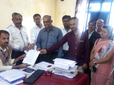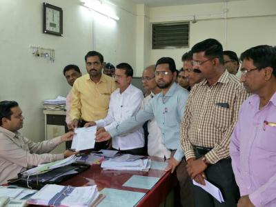 नंदुरबार येथील कनिष्ठ महाविद्यालयीन शिक्षक तहसीलदारांना मागण्यांचे निवेदन देताना.