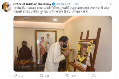 मुख्यमंत्री उद्धव ठाकरे यांनीही आपल्या मातोश्री निवासस्थानी सावरकर यांची जयंती साजरी केली