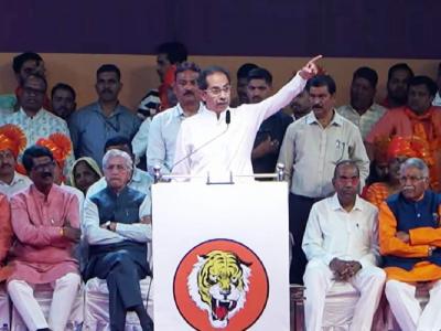 मी शून्य त्यामागे बाळासाहेब आहेत म्हणून मला किंमत. गुजरातला पटेल चोरले, बंगाल मध्ये सुभाषबाबू चोरले इकडे बाळासाहेब चोरले. चोराला, या वृत्तीला मत देणार का? तुम्ही धनुष्यबाण घेऊन या मी मशाल घेऊन येतो. जनता जे ठरवेल ते मला मान्य. मी हवा की नको हे तुम्ही ठरवणार निवडणुक आयोग नाही. २०२४ स्वातंत्र्य लढ्याशी संबंध नसलेला पक्ष गाडून टाकायचा आहे हा निश्चय करा. नाहीतर २०२४ नंतर आपल्या देशात लोकशाही शिल्लक राहणार नाही. उद्या शिमगा माझ्या सभेनंतर काही शिमगा करतील. संपूर्ण हिंदुस्थानात छत्रपतींचा भगवा आपल्या फडकवायचा आहे.