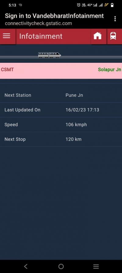 दुसरी महत्वाची गोष्ट म्हणजे ही ट्रेन एकदम सायलंट आहे. आतमध्ये जसे इतर ट्रेनना ट्रॅक आणि चाकांचे धकधक, खाडखाड असे आवाज येतात ते १२३ किमी प्रती तासाच्या स्पीडलाही येत नाहीत. वंदे भारतचा वेग किती आहे, ते तिथे लावलेल्या स्क्रीनवर दिसतो किंवा तुम्ही वंदे भारतच्या वायफायला कनेक्ट करून पाहू शकता.