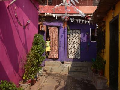 मुंबईतल्या घाटकोपरमधील असल्फा व्हिलेज हा सध्या एखाद्या कॅन्व्हासवर वेगवेगळ्या रंगांची स्टिकर चिटकवावीत तसा दिसू लागला आहे. (सर्व छायाचित्रे - सुशील कदम)
