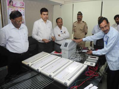 व्हीव्हीपीएटी मशीनचे प्रात्यक्षिक दाखवताना. (फोटो - सुशील कदम)