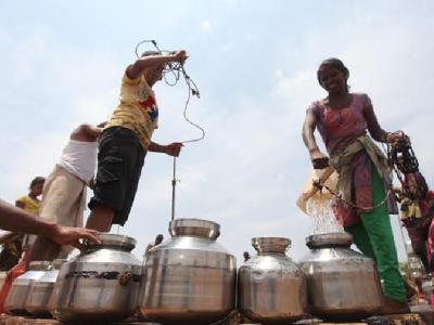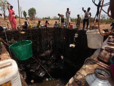 दुष्काळामध्ये विहीरी आटल्या आहेत ज्या विहीरीला पाणी लागत आहे तिथे गावक-यांची पाण्यासाठी एकच गर्दी होत आहे.