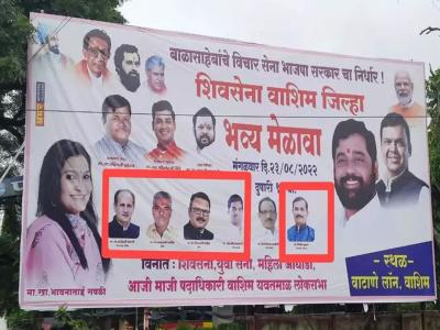 या सर्वांचे फोटो बॅनरवर लावण्यात आले आहेत. या बॅनरवर भावना गवळी वगळता वाशिम जिल्ह्यातील एकाही शिवसेना पदाधिकाऱ्यांचा फोटो नाही. त्यामुळे अनेक तर्क-वितर्क लावले जात असून, चर्चांना चांगलाच ऊत आल्याचे बोलले जात आहे.