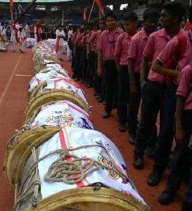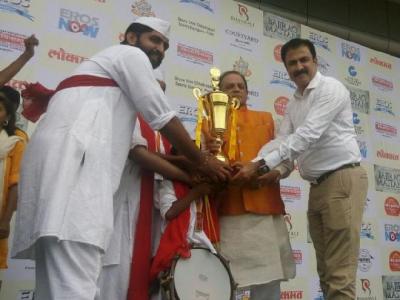 उपक्रमात सहभागी झालेल्या ढोल ताशा पथकाच्या प्रतिनिधीचा सत्कार करण्यात आला या उपक्रमाचे प्रायोजक राजेश सांकला आणि संजय घोड़ावत यांच्या हस्ते.