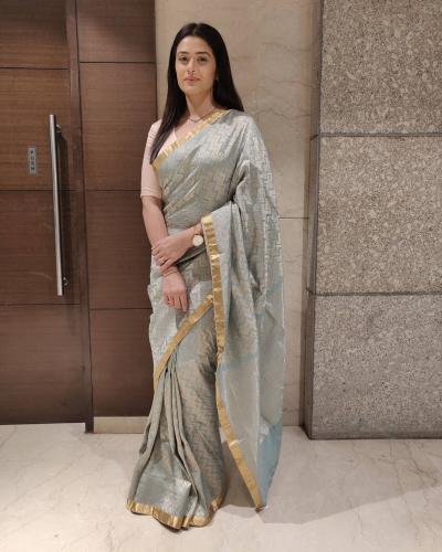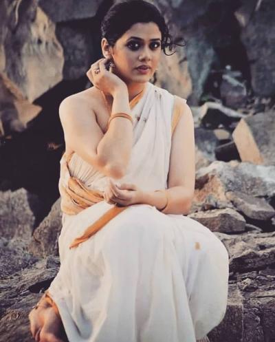 पांढ-या गोल्डन रंगाची साडी परिधान केलेला फोटो रसिकांना भावतो आहे.