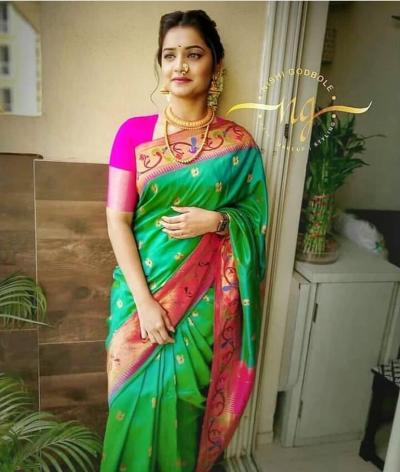 साडी परिधान केली असून नाकात नथ, कपाळावर टीकली असा साजश्रृंगार केलेला पाहायला मिळत आहे