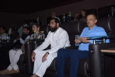 या प्रिमियरला शिवसेना नेते तथा राज्याचे नगरविकास मंत्री एकनाथ शिंदे यांनी खास लोकग्रहास्तव चित्रपटामध्ये धर्मवीर आनंद दिघे साहेब यांची भूमिका साकारणारा प्रसाद ओकसोबत बुलेटवरून चित्रपटगृहात एन्ट्री घेऊन सगळ्यांना आश्चार्याचा धक्का दिला. (Photo Instagram