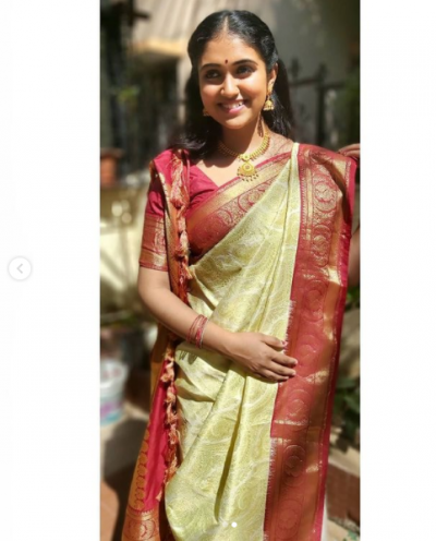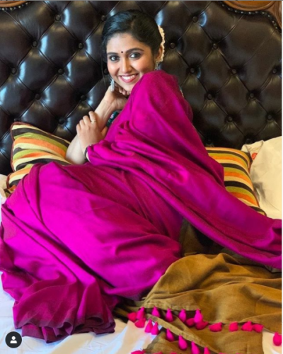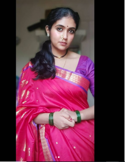 लाल आणि गुलाबी रंगाची साडी परिधान केलेला फोटो रसिकांना भावतो आहे.