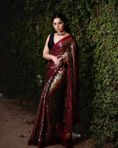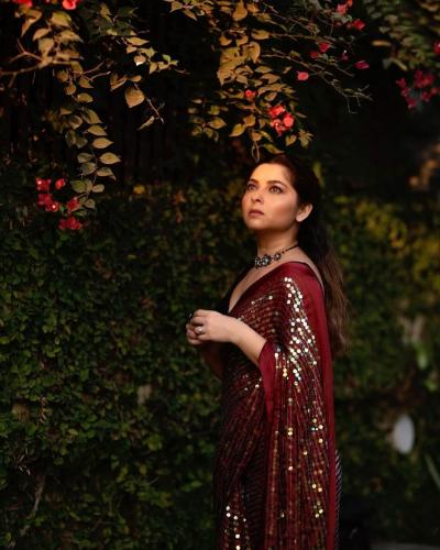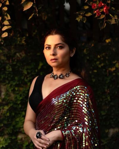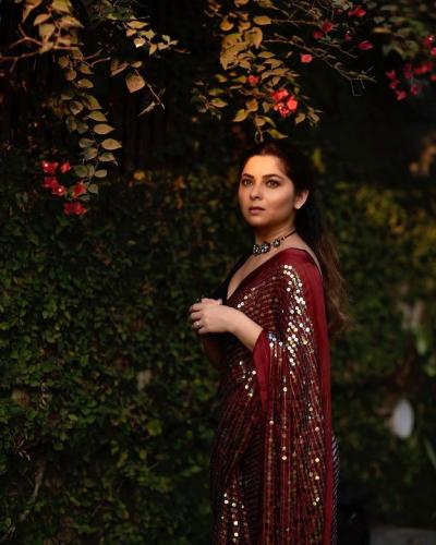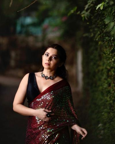मरून रंगाच्या सीक्वेंस साडीत स्टनिंग दिसली सोनाली कुलकर्णी, फोटो पाहून म्हणाल - क्या बात है!