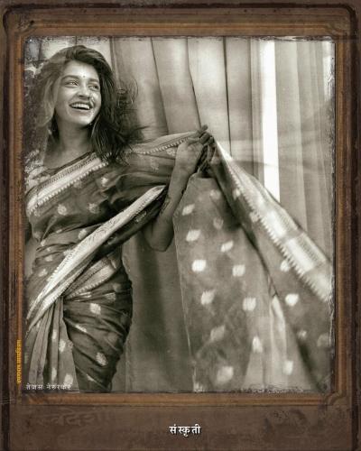या फोटोत साडी परिधान केली असून नाकात नथ, कपाळावर टीकली असा साजश्रृंगार केलेला पाहायला मिळत आहे.