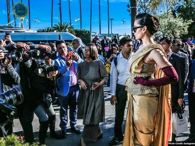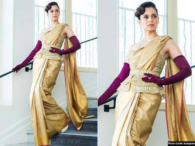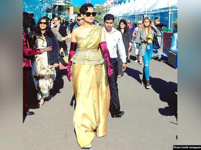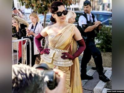 कान्स फिल्म फेस्टिवल 2019 मध्ये कंगना गोल्डन कलरच्या साडीत दिसली.