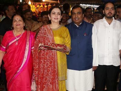 यावेळी अंबानी दाम्पत्याबरोबर मुकेश अंबानींची आई कोकिळा बेनही उपस्थित होत्या.