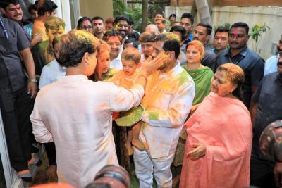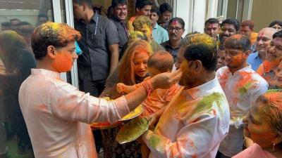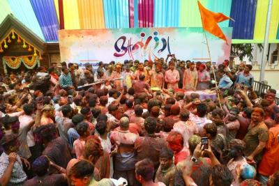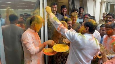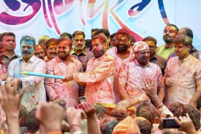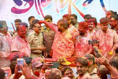 राज्याचे मुख्यमंत्री एकनाथ शिंदे यांनी देखील रंगपंचमी साजरी केली.