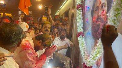 एकनाथ शिंदेंनी आनंद आश्रमात जमलेल्या शिवसैनिकांना शुभेच्छा देऊन त्यांच्यासोबत धूलिवंदनाचा सण ढोल ताशांच्या गजरात रंगाने न्हाऊन निघत, रंगांची उधळण करत दरवर्षीप्रमाणे मोठ्या उत्साहात आणि आनंदाने साजरा केला.