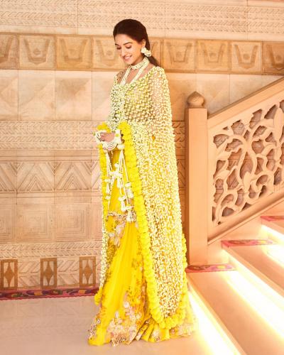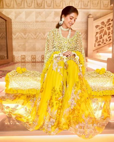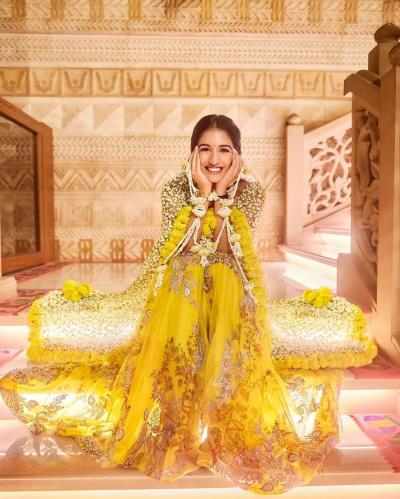 अनंत-राधिकाच्या हळदी समारंभासाठी पिवळ्या रंगाची थीम करण्यात आली होती. राधिकाने पिवळ्या रंगाचा ड्रेस परिधान केला होता.