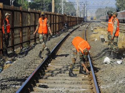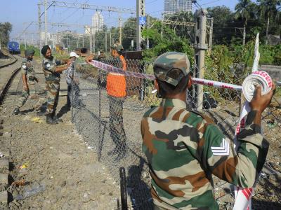 एल्फिन्स्टन फूट ओव्हर ब्रिज एलफिन्स्टन स्थानकावरील फूट ओव्हर ब्रीज बांधण्याची जबाबदारी त्यानंतर भारतीय सैन्याकडे दिली गेली. (छाया - सुशिल कदम)