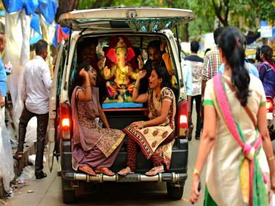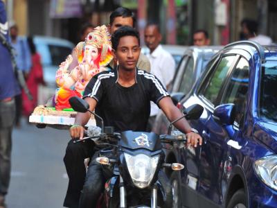 लाडक्या बाप्पांना घरी घेऊन जाताना तरुणी (फोटो - स्वप्निल साखरे)