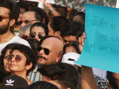 'आसिफाला न्याय द्या', या आशयाचे बॅनर हातात घेऊन सर्वसामान्य व सेलिब्रेटी कार्टर रोडवर जमले होते.